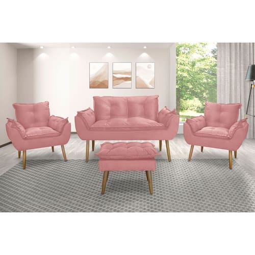 DescriçãoConjunto Opala Namoradeira + 2 Poltrona Salão Recepção Escritório + puff decorativoEsse lindo conjunto composto com Namoradeira + 2 Poltrona chegou encantando e complementando vários ambientes com seu designer moderno e robusto, eles trazem a você elegância e muito conforto sendo no espaço residencial ou comercial.Pensando sempre no bem estar de cada um trabalhamos com madeira reflorestada, espuma D-23 e D-26, com seu maravilhoso revestimento em suede e sua estrutura de alta qualidade.Com toda certeza essa opção irá atrair muitos elogios pelo bom gosto e pelas lindas opções e variedades nas cores.