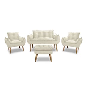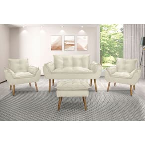 Kit Namoradeira Sofá Opala + 2 Poltronas Cadeira Opala + 1 puff - Bege