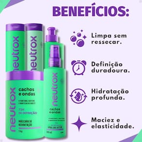 Descubra o poder do Kit Neutrox Cachos e Ondas, um tratamento completo e especializado desenvolvido pela Neutrox para realçar a beleza natural dos seus cabelos. Este kit abrangente foi cuidadosamente formulado para atender às necessidades específicas de cabelos cacheados e ondulados, proporcionando hidratação, definição e cuidado intensivo.