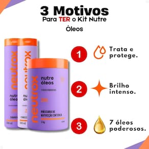 Transforme seus cabelos com o Kit Neutrox Nutre Óleos, a solução definitiva para cabelos ressecados e enfraquecidos. Desenvolvido pela Neutrox, este kit oferece uma nutrição profunda e um controle de frizz eficaz, resultando em fios saudáveis, macios e com brilho radiante. Ideal para todos os tipos de cabelo que necessitam de cuidados intensivos, este tratamento completo proporciona uma experiência de nutrição capilar incomparável, devolvendo a vitalidade e beleza aos seus cabelos. Imagine seus cabelos revitalizados, com um toque sedoso e um brilho que chama a atenção. O Kit Neutrox Nutre Óleos é a chave para alcançar esse resultado, nutrindo profundamente cada fio e controlando o frizz indesejado. Experimente a transformação e sinta a diferença de um cabelo verdadeiramente saudável e bem cuidado. Este kit é perfeito para quem busca praticidade e resultados visíveis desde a primeira aplicação, proporcionando um tratamento completo e eficaz para seus cabelos.