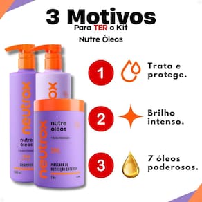 Transforme seus cabelos com o Kit Neutrox Nutre Óleos, a solução definitiva para cabelos ressecados e enfraquecidos. Desenvolvido pela Neutrox, este kit oferece uma nutrição profunda e um controle de frizz eficaz, resultando em fios saudáveis, macios e com brilho radiante. Ideal para todos os tipos de cabelo que necessitam de cuidados intensivos, este tratamento completo proporciona uma experiência de nutrição capilar incomparável, devolvendo a vitalidade e beleza aos seus cabelos. Imagine seus cabelos revitalizados, com um toque sedoso e um brilho que chama a atenção. O Kit Neutrox Nutre Óleos é a chave para alcançar esse resultado, nutrindo profundamente cada fio e controlando o frizz indesejado. Experimente a transformação e sinta a diferença de um cabelo verdadeiramente saudável e bem cuidado. Este kit é perfeito para quem busca praticidade e resultados visíveis desde a primeira aplicação, proporcionando um tratamento completo e eficaz para seus cabelos.