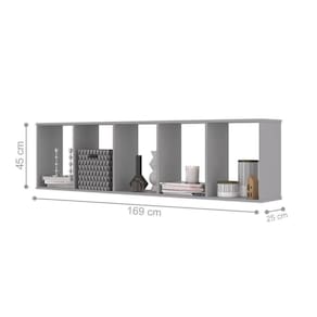 LARGURA DO PRODUTO (CM): 169 | ESTADO DE ORIGEM: SP | MATERIAL PRINCIPAL: MDP | PESO DO PRODUTO (KG): 14,4 | ALTURA DO PRODUTO (CM): 45 | LARGURA PRODUTO COM EMBALAGEM (CM): 34 | CONTEÚDO DA EMBALAGEM: 5 Nichos | INSTRUÇÕES/CUIDADOS: Limpar com pano macio e seco, não utilizar produtos abrasivos. | COR PREDOMINANTE: Cinza | ALTURA DO PRODUTO COM EMBALAGEM (CM): 10 | PRODUTO PRECISA DE MONTAGEM?: Sim, a montagem é simples mas sugerimos a contratação do nosso de montagem (para os CEPs em que o está disponível) ou de algum experiente de sua preferência | CORES DO PRODUTO (FILTRO DE CORES): Cinza | COMPRIMENTO PRODUTO COM EMBALAGEM (CM): 173 | PESO PRODUTO COM EMBALAGEM (KG): 15,2 | MODELO: Kit Nichos 5 Compartimento Flórida Cinza | DESCRIÇÃO DO TAMANHO: 169x45x25 cm | MATERIAL PARA FILTRO: MDP | COMPRIMENTO DO PRODUTO (CM): 25