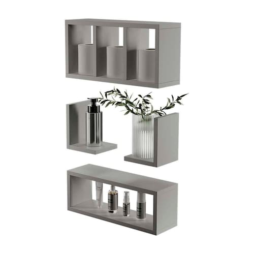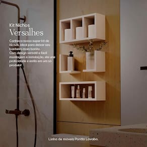 Kit é composto por: 01 Nicho com divisórias, 01 Nicho retangular e 02 prateleiras pequenas