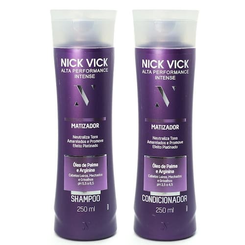 O Kit Shampoo e Condicionador Matizador Intense Nick Vick traz a inovação tecnológica para a neutralização de tons amarelados nos cabelos loiros e mechados, causados pela oxidação excessiva por ação do sol, da piscina e da poluição do ar.