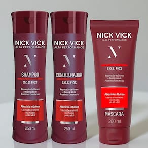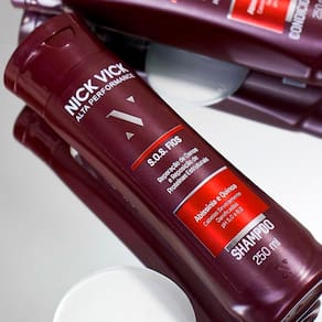 O Kit Shampoo Condicionador e Máscara SOS Fios Nick Vick foi formulado para um tratamento de choque e reposição de proteínas estruturais como a queratina, colágeno e elastina.