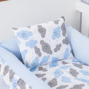 Kit Ninho Redutor + Almofada Amamentação Bebê Nuvem Azul