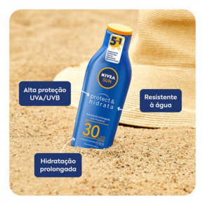 NIVEA Sun Protect & Hidrata FPS30 - Protetor Solar 200ml: com textura leve e rápida absorção, oferece alta proteção.