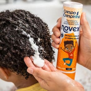 Tratamento Condicionante: Após lavar os cabelos com o shampoo, aplique o Tratamento Condicionante Novex Crespo e Crespinho do comprimento às pontas, massageando suavemente para selar as cutículas. Deixe agir por 3 minutos e enxágue abundantemente. Para melhores resultados, utilize a linha completa Novex Crespo e Crespinho.