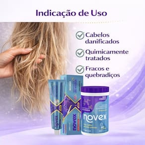 Creme De Tratamento: Lave os cabelos: utilize um shampoo da Novex de sua preferência e enxágue bem. Aplique o creme: com os cabelos úmidos, aplique uma quantidade generosa do Creme de Tratamento Novex Reposição de Massa mecha por mecha, desde a raiz até as ponta. Massageie e deixe agir: massageie suavemente e deixe o produto agir por 3 minutos para uma hidratação rápida. Para um tratamento mais profundo, deixe por 10 minutos. Enxágue: retire todo o produto com água abundante. Finalize como desejar: finalize com secador, prancha ou deixe secar naturalmente.
