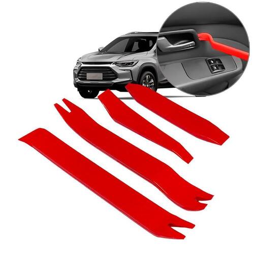 O Kit Espátula para Remoção de Painel, Molduras e Grampos Vermelha é perfeito para desmontar peças do seu veículo de forma segura e sem danificar a superfície. Composto por 4 espátulas de nylon, este kit oferece excelente acabamento e qualidade.