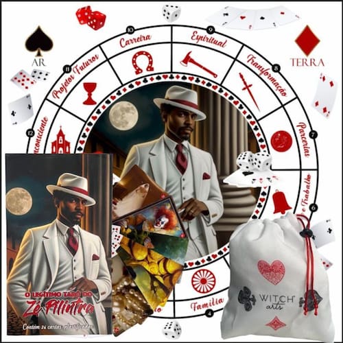 Kit O Taro do Zé Pilintra + Estojo + Toalha Kit O Taro do Zé Pilintra + Estojo + Toalha Toalha de Mesa Zé Pelintra para jogos de cartas Esta toalha de mesa é ideal para jogos de cartas, deixando sua mesa bonita, moderna e sofisticada e intuitiva. Ela foi totalmente desenvolvida pensando em deixar o seu jogo de cartas mais confortável e prático é composta por tecido, linda estampa, o que oferece ainda mais requinte ao teu jogo. DIFERENCIAIS: - Qualidade de impressão - pode ser utilizada em altar - Desenvolvida especialmente para jogos de cartas intuitivas - Composição: tecido - Estampada - Cor bem definida - Quadrada 68 cm x 68 cm - Lavável em máquina Acompanha Estojo para Cartas Tamanho Regular 20 cm x 19 cm Peso: 15 g Composição:tecido Lavável em máquina Baralho Zé Pilintra Contém 36 cartas plastificadas e acompanha Manual de Orientação com 16 páginas e impresso com versão em português dentro da Caixa. Este Manual também está disponível em QR Code na Embalagem de Acesso ágil e instantâneo, é só apontar o aplicativo da câmera integrada do seu Smartphone ou Tablet Android ou IOS. Todas as cartas possuem identificação escritas em português. Dimensões da caixa 70 mm de largura x 35 mm de altura x 125 mm de comprimento Peso aproximado de cada baralho: 110 g Respostas das dúvidas mais frequentes na ordem: R1: Já realizamos milhares de entregas em todo o Brasil, somos especialistas no que fazemos. R2: Assim que seu pedido for despachado, esta plataforma envia para você o código de rastreamento. R3: Enviamos o produto 100% inspecionado e conferido em nosso checkout e são embalados em embalagem de papelão e plástico bolha. R4: O tempo de entrega irá depender totalmente do seu CEP, todos os nossos produtos saem de Capital. R5: Iremos despachar o seu produto o mais rápido possível, assim que for confirmado pela plataforma, enviamos em até 24h. R6: Nós queremos a sua satisfação, qualquer problema iremos te auxiliar em nossos canais de comunicações. Marca: Não Informado Ean: 7890003943823