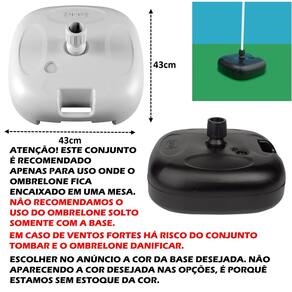 Kit Ombrelone 2,5m Ipanema Azul Com Manivela Articulado + Base Plástica - AMZ - Branco
