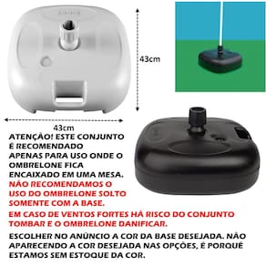 (BASE PLÁSTICA GUARDA SOL) - Marca: Mor - Material: Polipropileno - Capacidade: 18l de água ou 22kg de areia - A base tem compatibilidade com hastes de ø19mm a ø38mm. - Dimensões: (C) 43,4cm x (L) 42,5cm x (A) 22,4cm / Peso: 950g