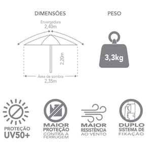 Sua cobertura com fator de proteção solar UV 50+ é feita com tecido em poliéster com camada de silver coating, proporcionando a máxima proteção pois bloquea até 98% da radiação ultravioleta.