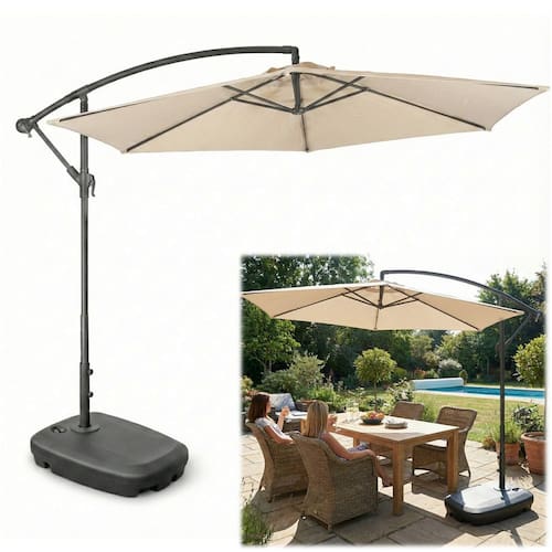 O ombrelone é feito de 100% poliéster, à prova d'água e resistente a UV, durável e fácil de limpar.