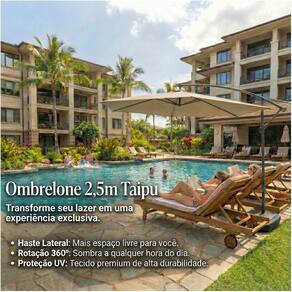 O Ombrelone Taipu possui design elegante é perfeito e necessário para o verão ou dias ensolarados para proteger o sol. Perfeito para espaços residenciais e comerciais como jardim, alpendre, quintal, restaurante e qualquer outra área externa.