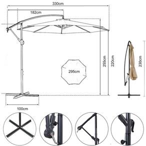 O ombrelone é feito de 100% poliéster, à prova d'água e resistente a UV, durável e fácil de limpar.
