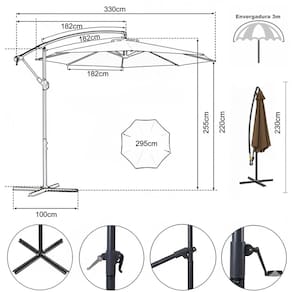 - Não é recomendado deixar o ombrelone do lado de fora em condições climáticas adversas (chuva, vento, neve ou granizo).