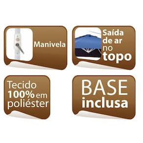 Composto de 4 peças, permite o manejo e instalação de forma fácil, o que proporciona mudar o seu ombrelone de um lugar para outro onde você deseja, sem esforço. Não acompanha estrutura metálica, nem a haste/mastro central metálica. A base metálica normalmente acompanha o ombrelone.