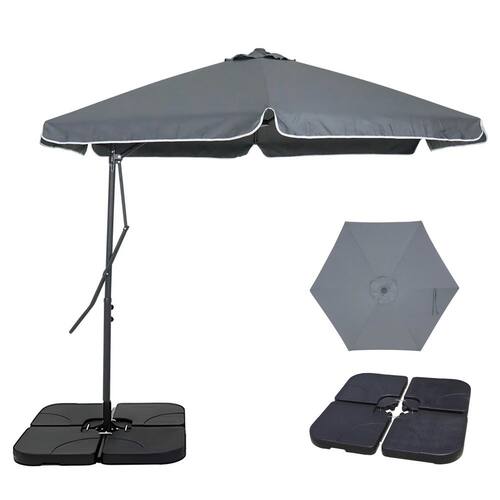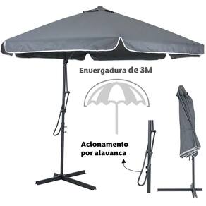 Kit Ombrelone Lateral Suspenso 3m Oslo Com Alavanca + Base 60L Quadrada - Belfix - Cinza