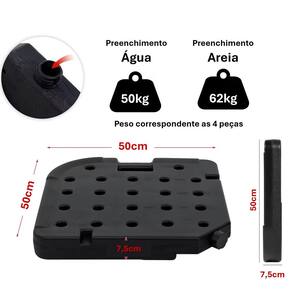 Preenchida com ÁGUA: cada peça comporta 15L ou 12,5kg (60L e 50kg as 4 pçs.)