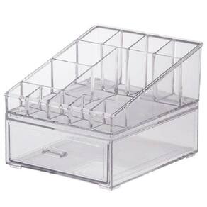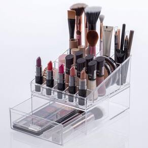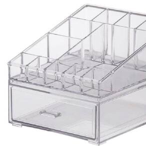 - Com o Organizador de Cosméticos sua bancada ficará organizada e seus produtos de beleza sempre a mãos. Contém 1 gaveta com tamanho ideal para paletas de sombra ou blush, 5 divisórias para batons ou esmalte e mais 7 divisórias para pincéis, demaquilantes, bases e o que mais você quiser. Confeccionado em material resistente e transparente ele é o guardião perfeito para as suas joias.Código469849221Código de barras7898943566362Referência1088ModeloEleganceDimensões Produto - cm AxLxP 18,5X16,5X14,5MarcaParamountLargura cm 18.5 cmCorCristalPeso0.667FabricanteParamountMaterial da EstruturaPlásticoQuantidade de Peças01 peçaLinhaCAIXA ORGANIZADORA COSMÉTICOSModelo de LumináriaEleganceComposição/materialPlásticoMaterialPlásticoAltura cm 16.5 cmProfundidade cm 14.5 cmDescrição e Número de Peças01 peçaEstampa/corCristalRecomendações de UsoNÃO USAR PRODUTO ABRASIVODimensões do produto - cm AxLxP 18,5X16,5X14,5Itens inclusos na embalagem-01 Kit Organizador