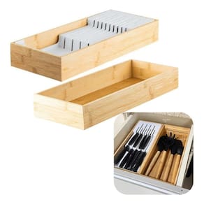 ASPEN DECOR F6228 Conjunto Organizador de gavetas que vai elevar o nível da organização na sua casa.O Organizador de Facas garante organização e cuidado para o seu dia a dia. Permite acomodar as facas de forma segura, garantindo a durabilidade do fio. Possibilita o máximo aproveitamento de espaço nas gavetas. Já o Organizador de Gavetas com seu design modular possibilita diversas composições, pode ser utilizado para acomodar utensílios, panos de prato e muito mais. Possui versatilidade para organizar toda a casa, desde a cozinha aos armários do quarto. O bambu promove a sustentabilidade de um material 100% renovável, e traz sofisticação para decorar a sua casa. Conteúdo da Embalagem: 1 Organizador de Facas e 1 Caixa Organizadora retangular Especificações Técnicas: Medidas: Porta Facas: 38,4cm C x 15,7cm L x 5,7cm A ; Capacidade : 5 Facas Grandes e 4 Facas Pequenas Caixa Organizadora de Gaveta: 38,4cm C x 15,7cm L x 5,7cm A ; Capacidade : Serve para utensílios para panos de prato, permite várias composições.