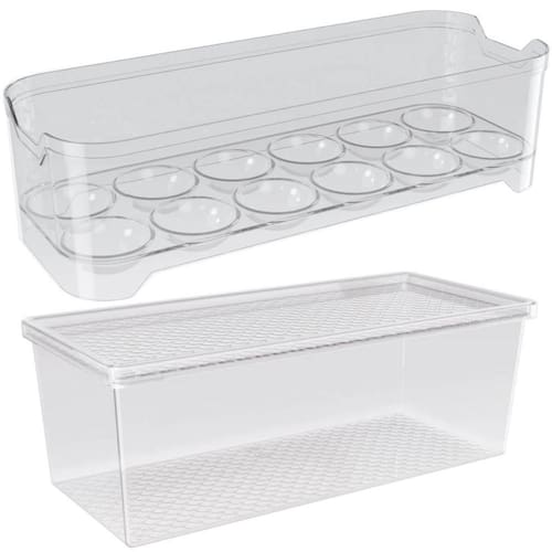 Kit Organizador de Geladeira 4,5L e Porta Ovos 12 Unidades Transparente Uz Multiuso.