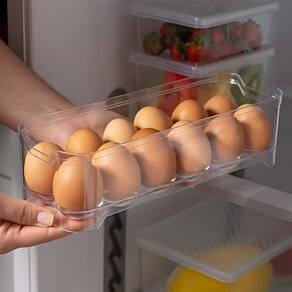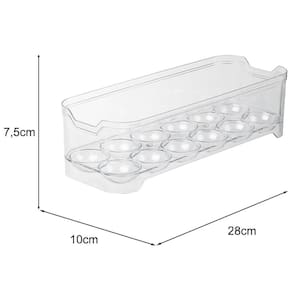 Dimensões internas do organizador de ovos: 27cm (C) x 9,5cm (L) x 5,5cm (A);