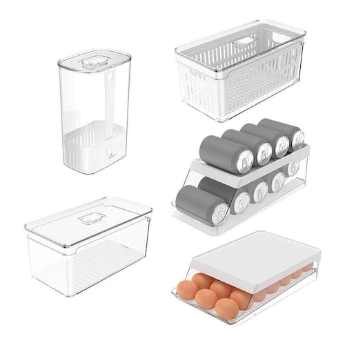 Kit Organizador de Geladeira Clear Fresh 5 Peças Transparente OuO organizador de temperos Clear Fresh promove frescor prolongado para os alimentos, para uma rotina mais saudável e sem desperdícios. Seu armazenamento inteligente aumenta a durabilidade dos temperos deixando-os sempre frescos e prontos para o preparo. Seu design clean traz mais beleza e sofisticação para a sua geladeira. Sua transparência possibilita a visualização dos alimentos e garante a organização do ambiente. Possui tamanho ideal para uso na porta da geladeira, para facilitar o acesso aos temperos. Transparência, beleza e cuidado com o alimento são características da linha Clear Fresh, perfeitas para auxiliar na organização da sua geladeira e facilitar o seu dia a dia. O organizador de latas inteligente Clear Fresh possibilita o melhor aproveitamento de espaço para a geladeira, e a praticidade do sistema inteligente de rolagem traz o frescor e conforto que você precisa para uma rotina mais leve. Seu design foi pensado para facilitar a armazenagem e manuseio das latas. Produzido em material resistente (PS Transparente), o organizador garante durabilidade, praticidade e fácil higienização. Transparência, beleza e cuidado com o alimento são características da linha Clear Fresh, perfeitas para auxiliar na organização da sua geladeira e facilitar o seu dia a dia. O organizador de ovos Clear Fresh com movimento automático possibilita uma rotina mais leve e prática, devido ao sistema inteligente de rolagem dos ovos. Traz o frescor e conforto que você precisa para uma vida mais saudável. Seu design foi pensado para armazenagem no interior da geladeira ao invés da porta, evitando troca de temperaturas constantes que podem deteriorar os ovos, mantendo uma rotina sem desperdícios. Produzido em material resistente (PS Transparente), o organizador garante durabilidade, praticidade e fácil higienização. Transparência, beleza e cuidado com o alimento são características da linha Clear Fresh, perfeitas para auxiliar na organização da sua geladeira e facilitar o seu dia a dia. Os organizadores de geladeira Clear Fresh são o novo padrão de transparência na organização da sua geladeira. Empilhe, encaixe e enxergue facilmente os alimentos armazenados na geladeira, mantendo tudo em ordem. Seu design foi pensado para promover frescor prolongado aos alimentos, mantendo uma rotina sem desperdícios. Produzido em material resistente o organizar possui alças confortáveis que facilitam na hora do transporte. Super transparência, beleza e cuidado com o alimento são características da linha Clear Fresh, perfeitas para auxiliar na organização da sua geladeira e facilitar o seu dia a dia.