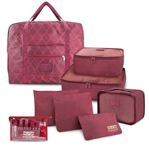 Kit Organizador de Malas 6 Peças + Bolsa Dobrável GG + Frascos de Viagem 10 Peças Jacki Design