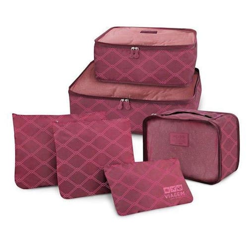 Kit Organizador De Malas Com 6 Peças Estampado ViagemO Kit Organizador de Malas da Jacki Design é o companheiro essencial para suas viagens. Ele acompanha 6 peças diferentes, permitindo organizar os pertences de forma harmoniosa e bonita. O Kit inclui 3 cubos organizadores e 3 necessaires P,M e G. Um produto que vai trazer muito mais praticidade e segurança para sua vida Tamanhos de Cubos:Cubo P: 30x21x13cmCubo M: 30x28x13cmCubo G: 40x30x13cmTamanhos de Bolsos:Bolso P: 26x16cmBolso M: 27x25cmBolso G: 35x27cm Material: Poliéster