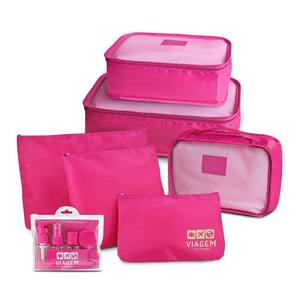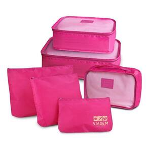 Kit Organizador de Malas + Frascos de Viagem 7 pcs Pink -