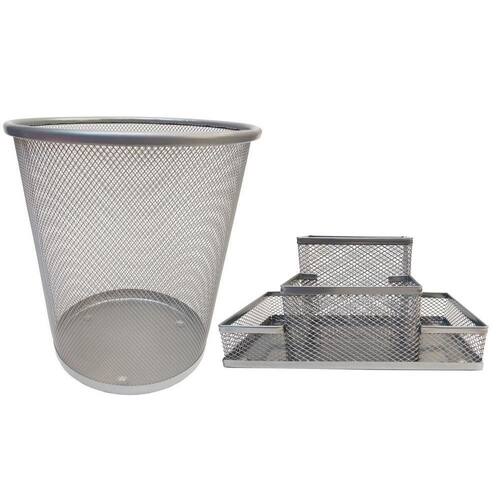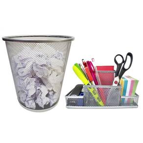 Kit organizador de mesa e lixeira de escritório Kit: prata Kit escritório com 2 unidades