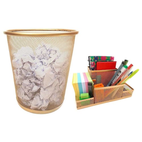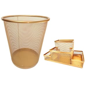 Kit organizador de mesa e lixeira dourado escritório Kit escritório dourado ouro com 2 unidades