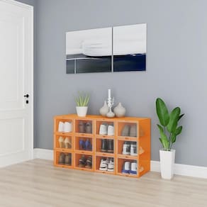 Kit Organizador De Tenis Sapatos Salto 6 Caixas Empilhavel Abertura Frontal Luxo Closet Quarto Compacto Laranja