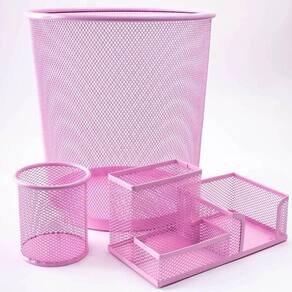 Kit organizador escritório lixeira porta treco lápis rosa Benefícios:Maravilhoso kit / combo para o seu escritório, contando com uma lixeira, um organizador porta treco e um porta caneta. Fabricado com metal telado e maravilhoso acabamento. Kits prontos para envio. Temos também disponível este kit na cor cinza ou preto DescriçãoConjunto de lixeira + porta caneta + porta treco organizador de escritório. - porta canetaAltura: 9,5cmDiâmetro: 8,5cm - organizador porta treco 3 divisórias Largura: 10,5cmAltura: 10cmComprimento: 20,5cm - lixeira 10lDiâmetro da boca: 24,5cmAltura: 27cm10 litros