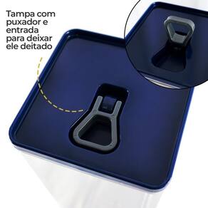 Feito para quem busca mais organização na cozinha, nosso kit de organizadores herméticos será a solução ideal Seu design conta com 3 tamanhos e capacidades diferentes, os organizadores são perfeitos para todas as suas necessidades, podendo guardar diversos tipos de alimentos com facilidade, possuindo uma abertura com alavanca, além da vedação hermética e possibilidade de empilha-los. Protegendo contra umidade, poeira e inseto, os organizadores mantêm os alimentos frescos e intactos em casa ou qualquer lugar que deixe.Feito com materiais de alta qualidade, eles são fáceis de limpar e oferecem resistência para o uso contínuo, além disso, a sua transparência facilita a visualização do conteúdo e seu design empilhável economiza ainda mais espaço. especificações:material: Peças em Plástico Injetado PP e PSC, Vedação em TPUDimensões:-Organizador Pequeno: Alt.: 11,5cm x Larg.: 11cm-Organizador Médio: Alt.: 16,5cm x Larg.: 11cm -Organizador Grande: Alt.: 28cm x Larg.: 11cmPeso: Aprox. 730gcapacidade:-pequeno: 1 Litro-Médio: 1,5 Litros-Grande: 2,5 LitrosCor: Transparente com Tampa Azul CONTÉM:01 KIT COM 3 ORGANIZADORES HERMÉTICOS 5 LITROS - AZUL