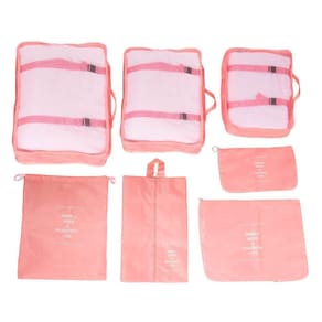 Kit organizador para mala de viagem 7 peças - rosa Viajar é incrível, mas manter as coisas organizadas pode ser um desafio. Com o nosso conjunto de organizadores de mala de viagem de 7 peças, você pode desfrutar de sua viagem sem se preocupar com bagunça. Cada organizador tem uma função específica, como guardar sapatos, roupas íntimas, meias, eletrônicos e muito mais. Com tamanhos diferentes, eles se encaixam perfeitamente em qualquer mala e ajudam a maximizar o espaço. Além disso, eles são feitos de material resistente e fácil de limpar, então você pode usá-los em várias viagens. Não importa se você é um viajante frequente ou apenas faz uma viagem de fim de semana, esse conjunto de organizadores é essencial para manter suas coisas arrumadas e fáceis de encontrar. O kit contém 7 peças nos seguintes tamanhos: Cubos: G: 39x29x10 cm M: 31x25x10 cm P: 30x21x10 cm Necessaires: 1: 35x28 cm 2: 36x26 cm 3: 27x16 cm 4: 34x24cm Material: poliéster Marca: Não Informado
