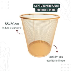 Kit escritório dourado ouro composto por: - 01 organizador de mesa escritório dourado ouro com 4 partições - 01 porta caneta, lápis dourado ouro - 01 lixeira aramada dourado ouro