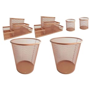 Kit escritório rose gold composto por: - 02 organizador de mesa escritório rose gold com 4 partições - 02 porta caneta, lápis rose gold - 02 lixeira aramada rose gold