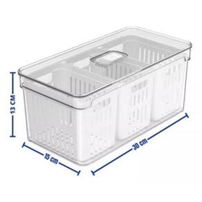 Sinta o frescor de uma vida leve, saudável e organizada. Sua transparência facilita a visualização dos alimentos e a organização do ambiente. Produzido em material resistente PS Transparente , o organizador garante durabilidade, praticidade e fácil higienização.