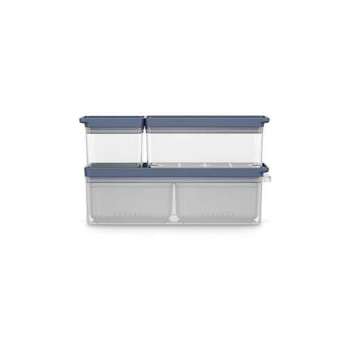 O Conjunto é composto por três Organizadores de Geladeira com formatos e tamanhos versáteis, além de serem empilháveis. Ideais para preservar, organizar e encontrar com facilidade tudo o que você precisa na sua geladeira.