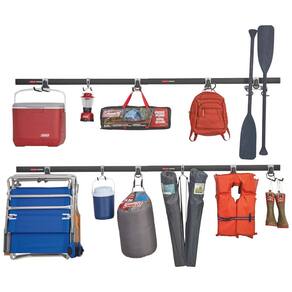 O kit inclui três trilhos de 48 polegadas 121,92 centímetros, quatro ganchos multifuncionais, dois ganchos para refrigeradores, três ganchos utilitários e três pacotes de hardware. Com esse conjunto, você poderá organizar facilmente suas ferramentas, equipamentos de jardinagem, materiais de limpeza e muito mais. As garras de travamento nos ganchos de acessórios garantem uma fixação segura ao prender os ganchos no trilho. O design durável e compacto cria zenamento adicional ao utilizar o espaço entre os pinos da parede. É fácil anexar, remover e reposicionar os itens conforme necessário. Com esse kit, você terá uma solução eficiente para organizar sua garagem de forma prática e conveniente.