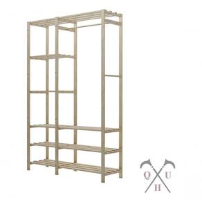 Estante arara com prateleiras e estrutura em madeira maciça de Pinus.