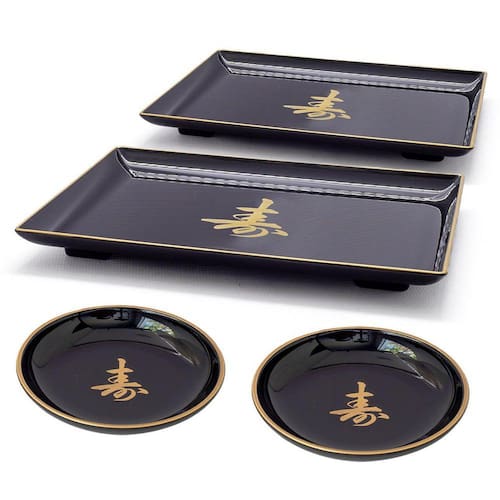 Kit Oriental Japonês para 2 Pessoas Molheira Prato Retangular Descrição:Kit oriental com acabamento preto laqueado de excelente qualidade, alto brilho e pintura do ideograma em dourado que representa felicidade. Peças indispensáveis para amantes da culinária oriental. Cores fortes inspiradoras nas tradicionais decorações japonesas podendo auxiliar no serviço de sushis, sashimis e outras iguarias. Cuidados:- Lavar com água morna e sabão neutro utilizando esponja macia, seguido de pano seco.- Não utilizar produtos químicos ou abrasivos na limpeza. - Não vai à lava-louças.Características: Molheira:Altura: 1,7cmLargura: 8,7cmComprimento: 8,7cmPrato Retangular:Altura: 2cmLargura: 13,5Comprimento: 19cmComposição: A.B.SConteúdo:- 2 x Unidades de Molheiras- 2 x Prato Retangular Cód.: 0774 Prato RetangularCód.: 0779 MolheiraSKU: TB001250