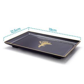 Kit Oriental Para 2 Pessoas Descanso Hashi Prato RetangularKit oriental com acabamento preto laqueado de excelente qualidade, alto brilho e pintura do ideograma em dourado que representa felicidade. Peças indispensáveis para amantes da culinária oriental. Cores fortes inspiradoras nas tradicionais decorações japonesas podendo auxiliar no serviço de sushis, sashimis e outras iguarias. Cuidados:- Lavar com água morna e sabão neutro utilizando esponja macia, seguido de pano seco.- Não utilizar produtos químicos ou abrasivos na limpeza. - Não vai à lava-louças.Características: Prato Retangular:Altura: 2cmLargura: 13,5Comprimento: 19cmComposição: A.B.SHashi:Espessura: 1cmComprimento: 21cmDescanso Hashi:Altura: 1,6cmLargura: 2,3cmComprimento: 5,5cmConteúdo:- 2 x Unidade de Prato Retangular - 2 x Pares de hashi- 2 x Unidades de Descanso hashi