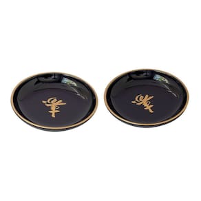 Jogo de jantar oriental com acabamento preto laqueado de excelente qualidade, alto brilho e pintura do ideograma em dourado que representa felicidade. Peças indispensáveis para amantes da culinária oriental. Cores fortes inspiradoras nas tradicionais decorações japonesas podendo auxiliar no serviço de sushis, sashimis e outras iguarias.
