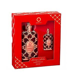 O Kit Orientica Luxury Collection Amber Rouge Eau de Parfum, lançado em 2021, é um conjunto sofisticado da marca Orientica, dos Emirados Árabes Unidos. Com uma fragrância amadeirada especiada unissex, Amber Rouge combina notas de açafrão, jasmim, âmbar cinzento, madeira de âmbar, cedro e resina de abeto, criando um aroma intenso e envolvente. O kit inclui um frasco de 30ml e uma miniatura de 7,5ml, ideal para viagens, retoques ou como presente, perfeito para ocasiões especiais ou uso diário marcante.