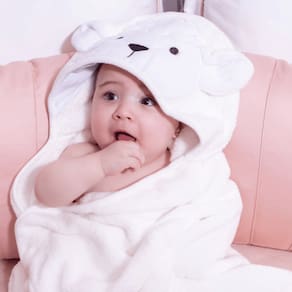 Toalha de Banho com Capuz Laço Bebê Ovelha Confeccionada em tecido de alta tecnologia com 85% poliéster e 15% poliamida, a Toalha de Banho Baby Laço Bebê Ovelha é extremamente macia, hipoalergênica e possui absorção até 8 vezes maior do que as toalhas comuns. Seu capuz mantém a cabeça do bebê protegida e seca, proporcionando uma sensação de conforto logo após o banho. O design delicado e o toque suave tornam o momento de cuidar do bebê ainda mais agradável.
